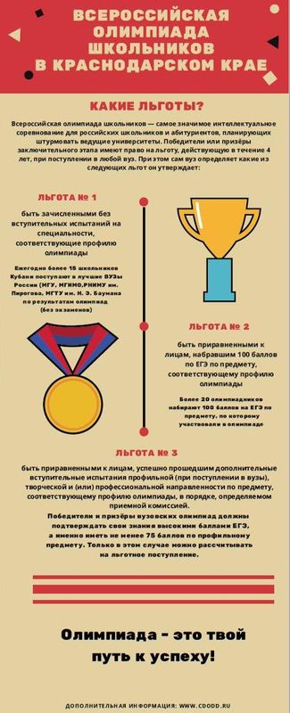 Победители и призеры Всероссийской олимпиады школьников входят в число претендентов на получение грантов Президента Российской Федерации, а также присуждение премии администрации Краснодарского края.