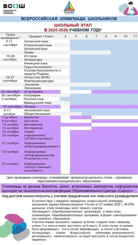 всероссийской олимпиады школьников: